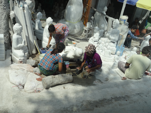La balade se poursuit le long des magasins des sculptures sur pierre.